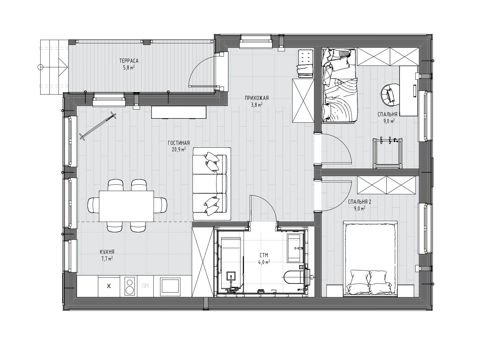 ДОМ ДЛЯ ЖИЗНИ - 60 м² с продуманной планировкой: две спальни, большая кухня-гостиная и никаких узких коридоров. Хотите себе дом, который строится на участке за несколько дней?