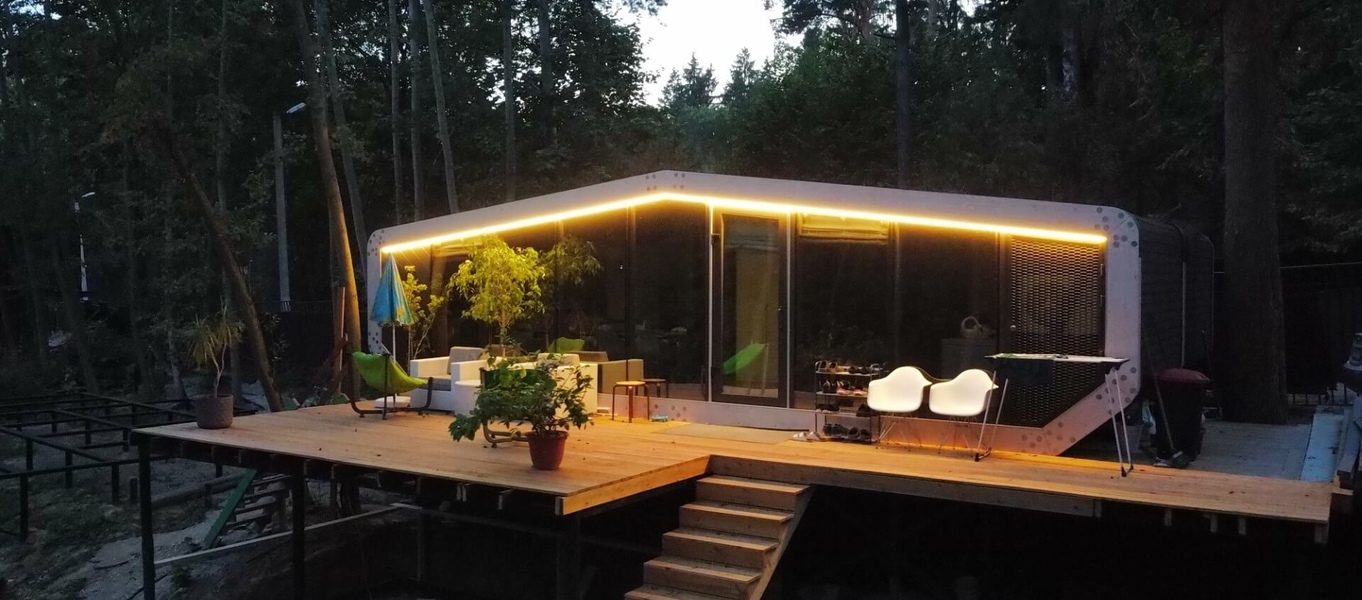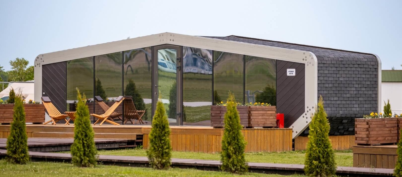 Домокомплект, состоящий из панелей стен, перекрытий и кровли, производится в сухом отапливаемом цеху.