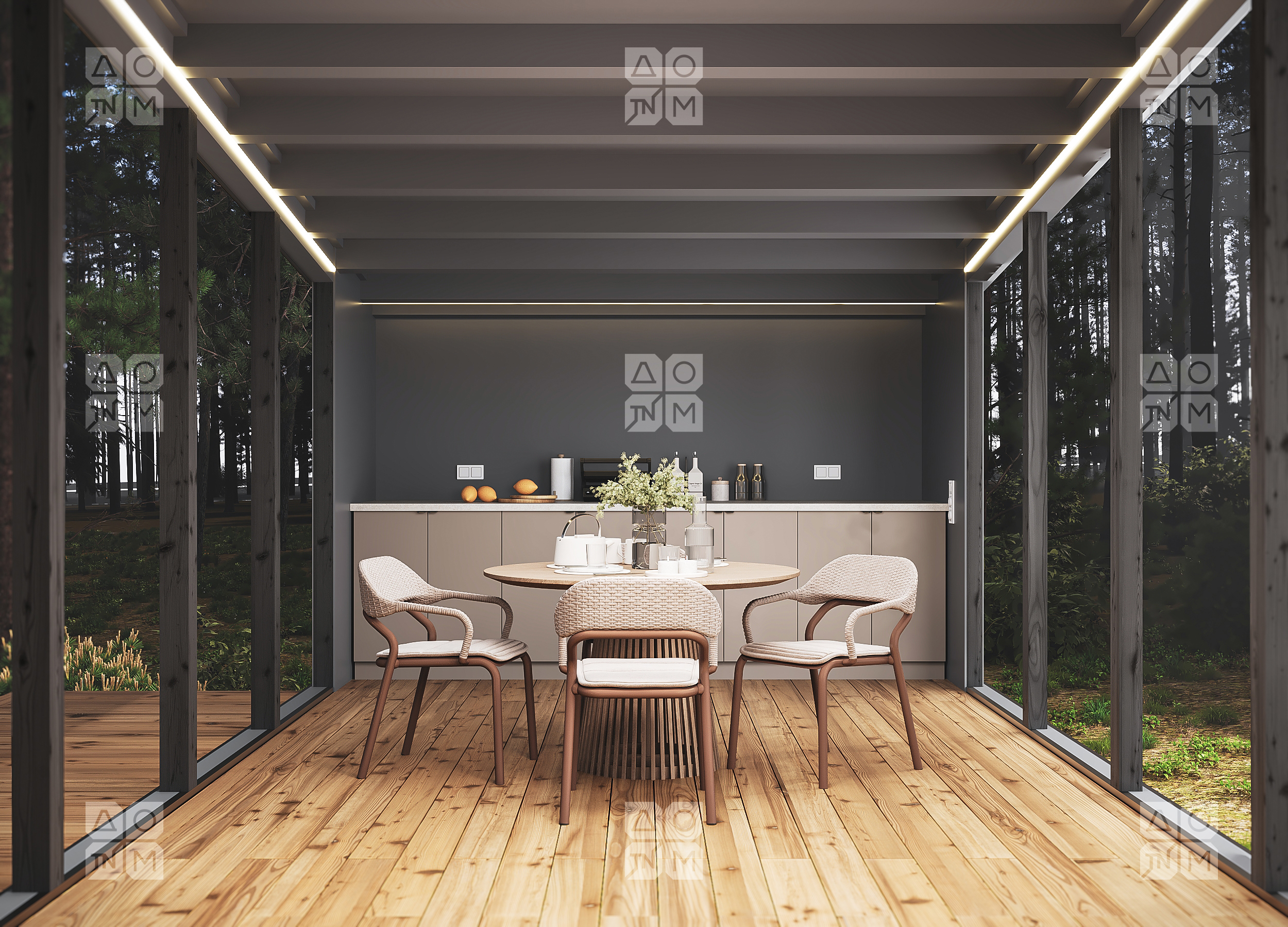 Домокомплект, состоящий из панелей стен, перекрытий и кровли, производится в сухом отапливаемом цеху.
